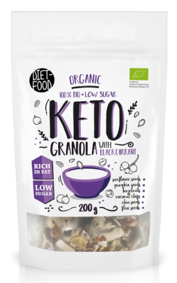 Diet-Food Granole to świetny produkt śniadaniowy zalej go ulubionym mlekiem, jogurtem bądź dowolnym sokiem owocowym, lecz możesz go jeść bezpośrednio z opakowania jako formę przekąski.
