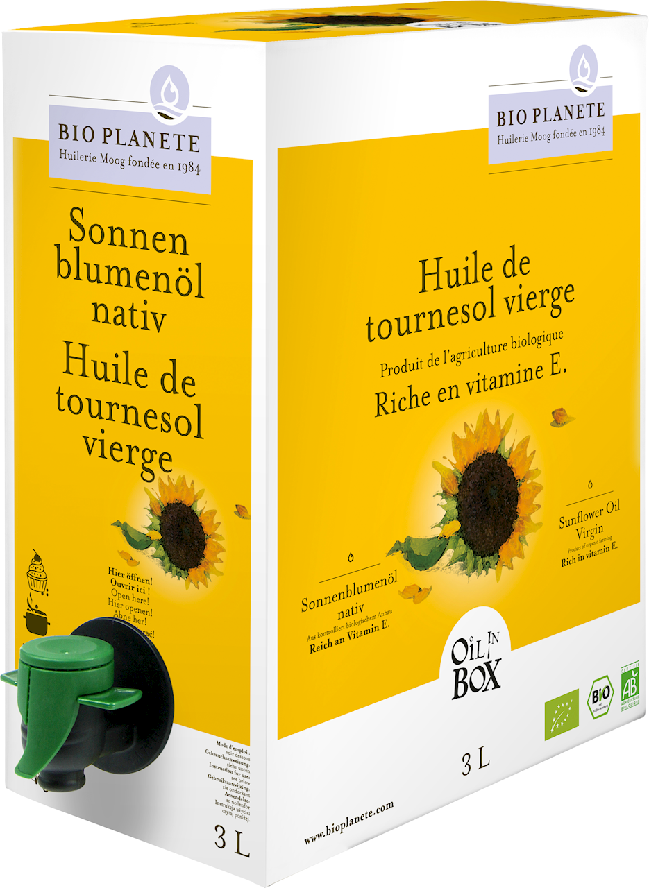 W firmie Bio Planete olej słonecznikowy ma wyjątkową tradycję: to pierwszy olej, jaki założyciel firmy, Franz J. Moog, wyprodukował w 1984 roku. Tłoczony na zimno olej słonecznikowy to nieodzowny składnik codziennej zrównoważonej diety. To doskonałe źródło witaminy E, która pomaga w ochronie komórek przed stresem oksydacyjnym. Olej słonecznikowy ceniony jest także ze względu na wysoką zawartość nienasyconych kwasów tłuszczowych, takich jak kwas linolowy.