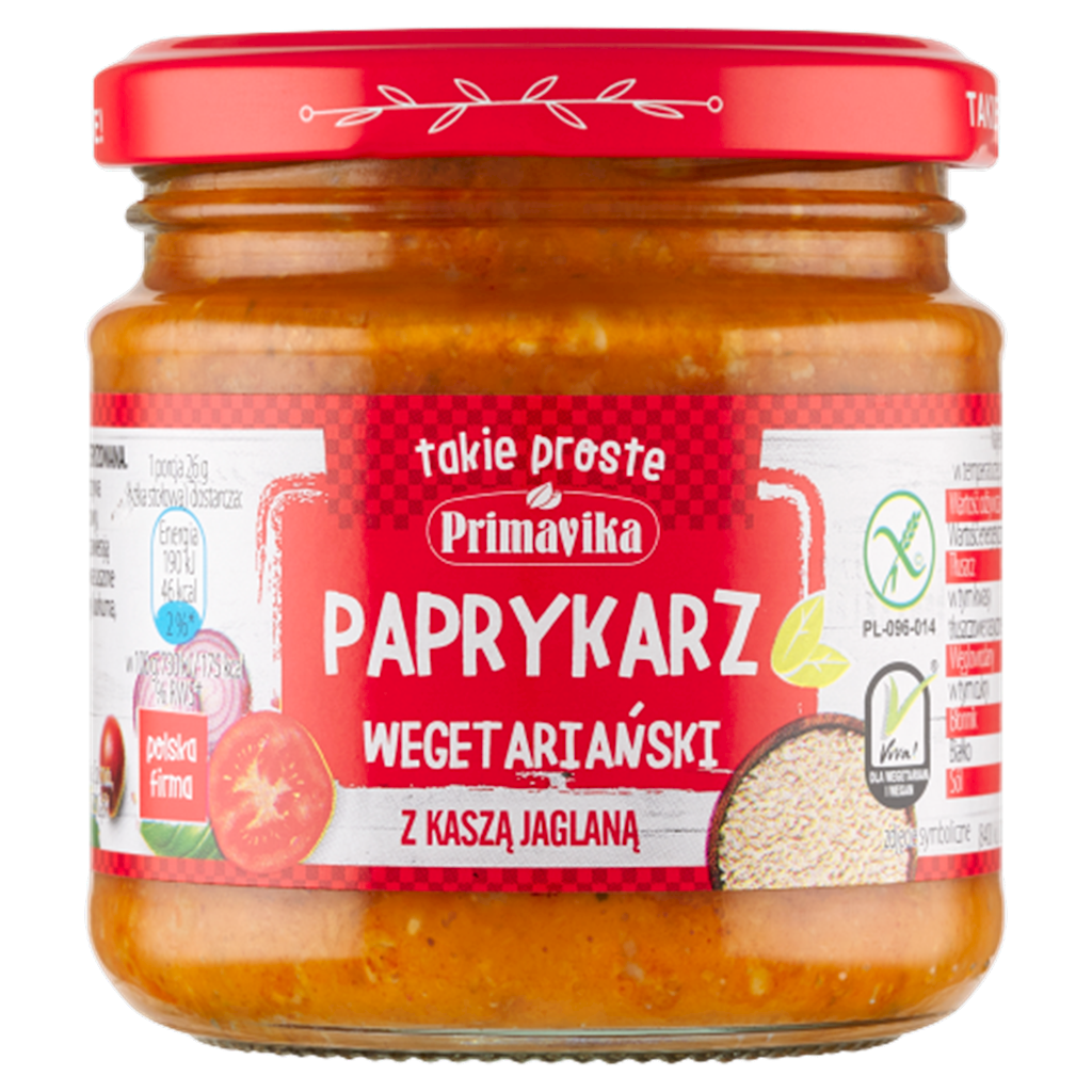 Pasta kanapkowa - paprykarz wegetariański z kaszą jaglaną. Produkt pasteryzowany. Bez dodatku cukrów. Zawiera naturalnie występujące cukry.