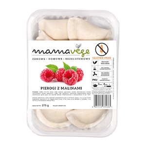 maliny 29,3 %, woda, mąki (ryżowa, gryczana), skrobia ziemniaczana, skrobia kukurydziana, skrobia tapiokowa, cukier, olej rzepakowy, substancje zagęszczające: guma ksantanowa, guma guar, sól, błonniki roślinne.
