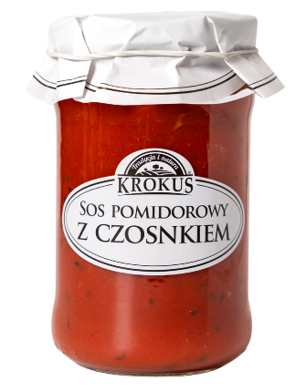 Nasz sos pomidorowy z czosnkiem produkujemy ze świeżych pomidorów, a nie z koncentratu. Pomidory gruntowe przecieramy przez sita, zagęszczamy odparowując wodę - nie dodajemy substancji zagęszczających. Do tak przygotowanej bazy dodajemy polskie przyprawy: cebulę, czosnek, bazylię, pietruszkę i sól. Nie dodajemy cukru. Całość jest dosmakowana i gotowa do użyciu od razu po otwarciu słoika.